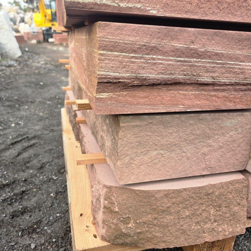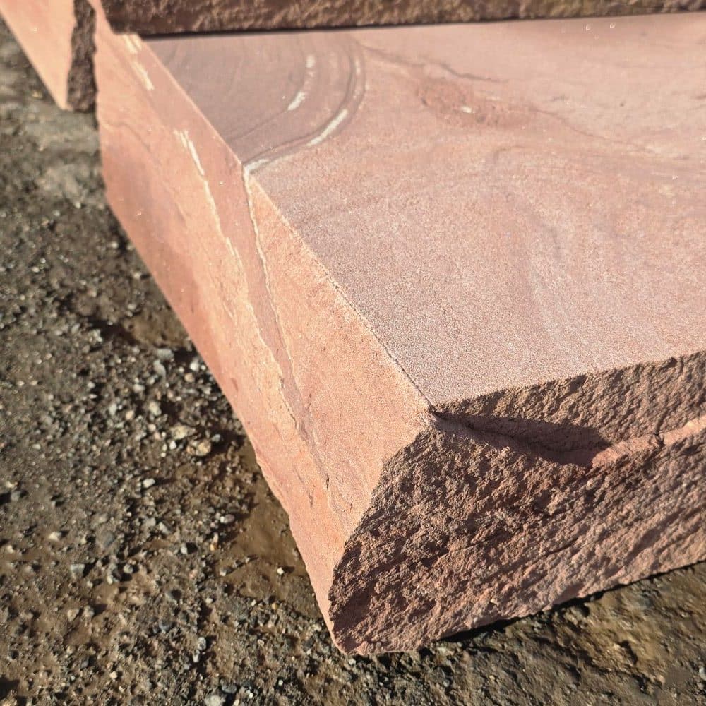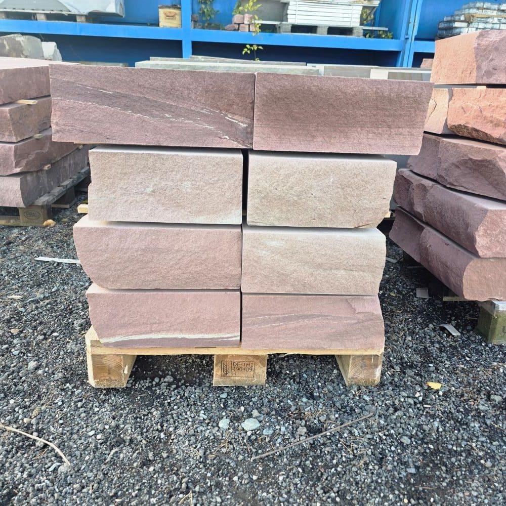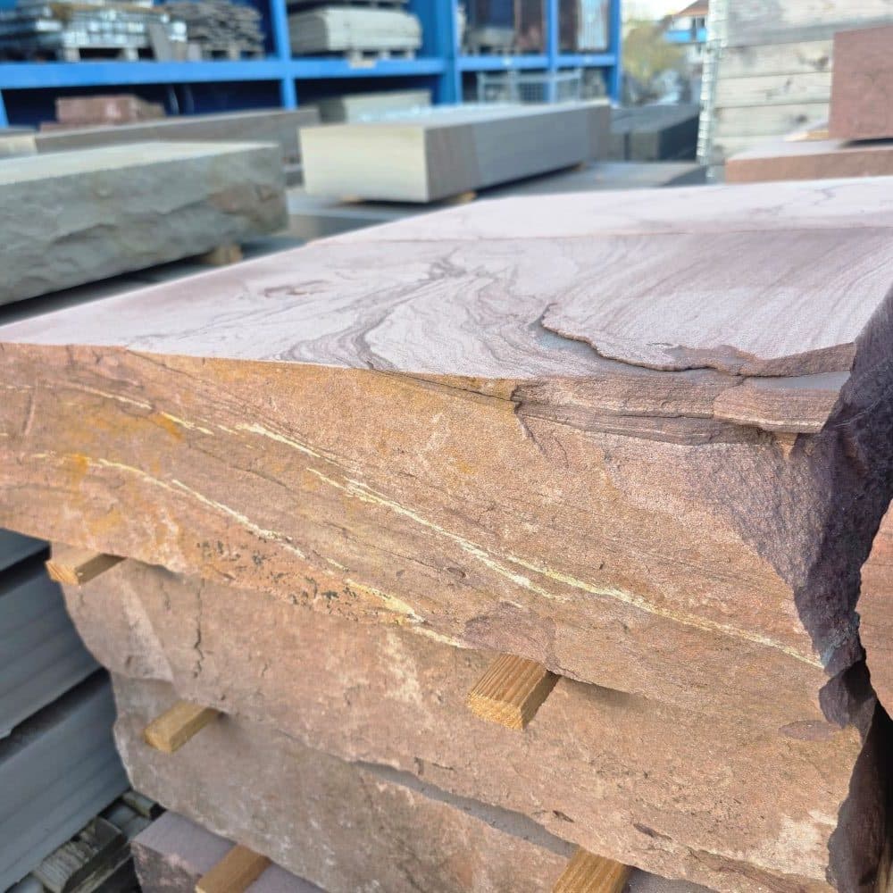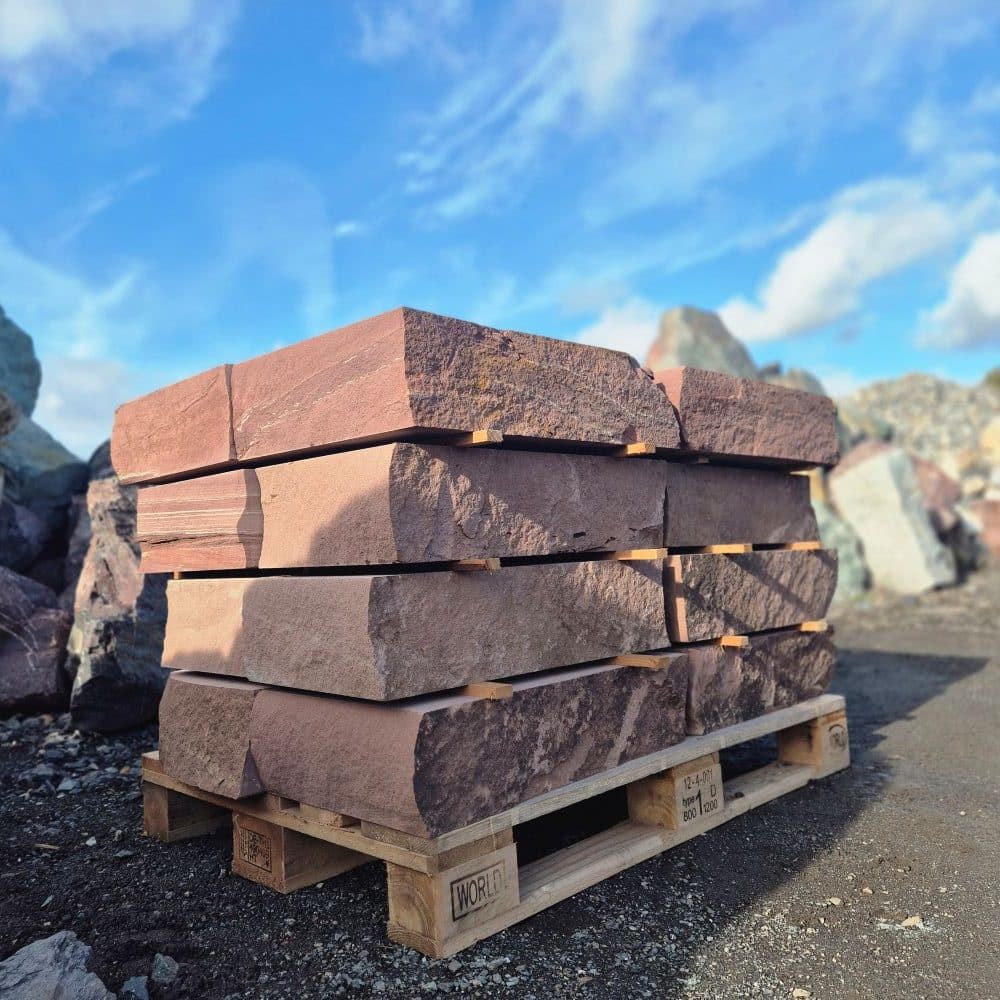 Da wir mitten Im Roten Sandsteingebiet liegen haben wir eine breite Auswahl an Stufen wie z.B auch antike Blockstufen, historische Mauersteine und Quader sowie unsere Tollen Bossierten edlen gestrahlten Sandstein edel Blockstufen. Ein Besuch lohnt sich.