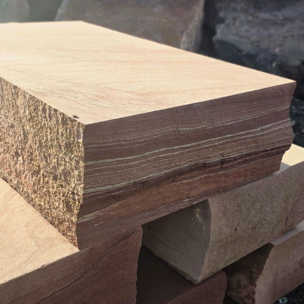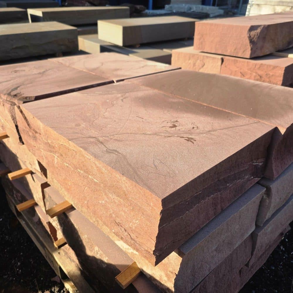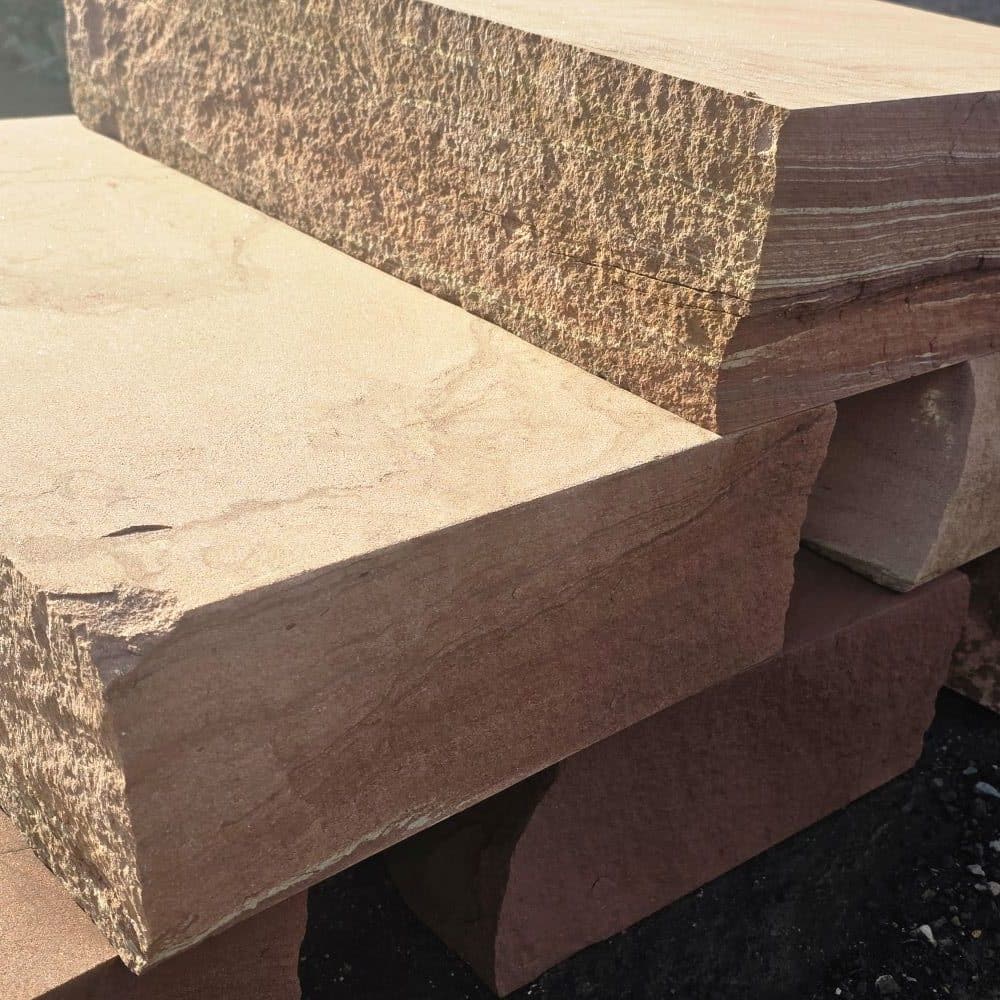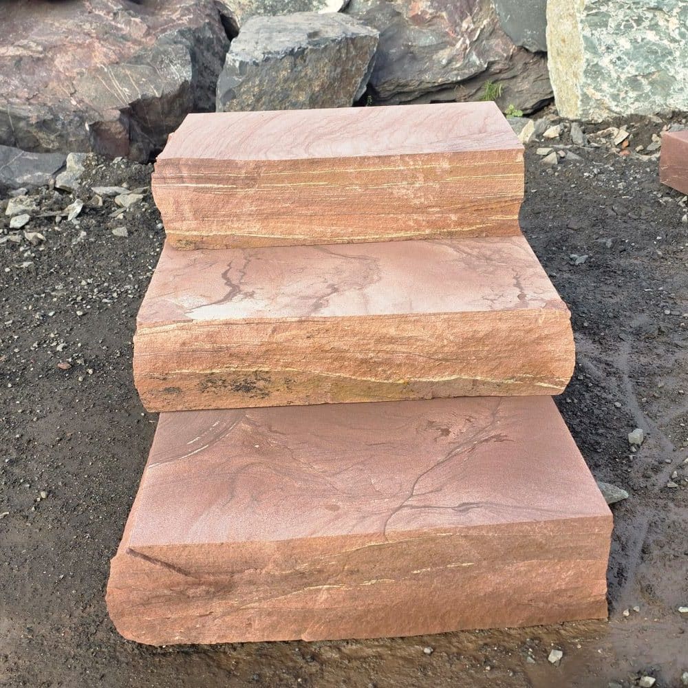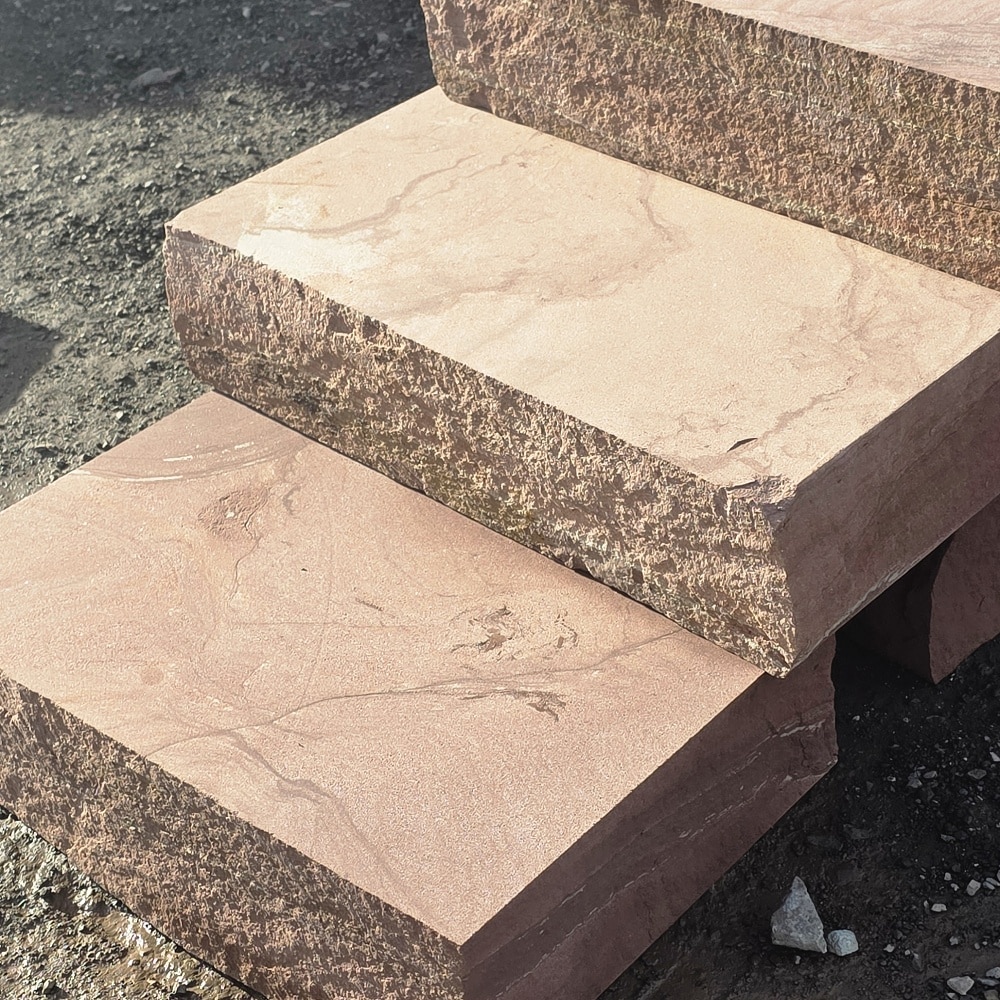 Da wir mitten Im Roten Sandsteingebiet liegen haben wir eine breite Auswahl an Stufen wie z.B auch antike Blockstufen, historische Mauersteine und Quader sowie unsere Tollen Bossierten edlen gestrahlten Sandstein edel Blockstufen. Ein Besuch lohnt sich.