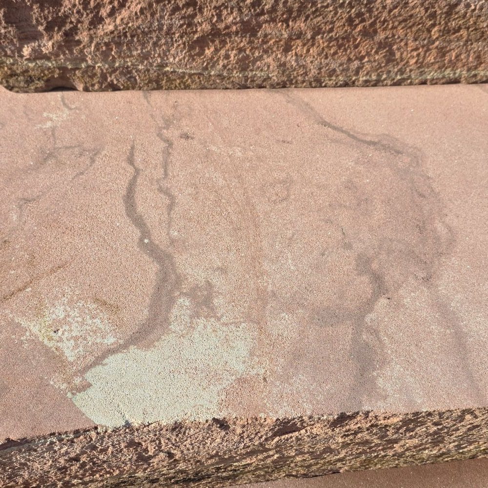 Kompakt, charakterstark und vielseitig: Unsere 60 cm langen Blockstufen aus rotem Mainsandstein bringen natürliche Wärme und zeitlose Eleganz in den Außenbereich.