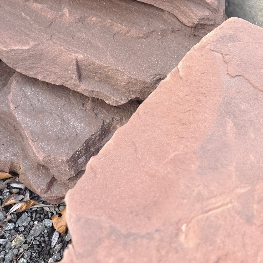 Typisch für den Mainsandstein ist seine rötliche Grundfarbe, die von helleren und dunkleren Einschlüssen durchzogen sein kann. Diese natürlichen Farbvariationen verleihen dem Garten Ihren eigenen Charakter und setzen bewusst farbliche Akzente im Garten.
