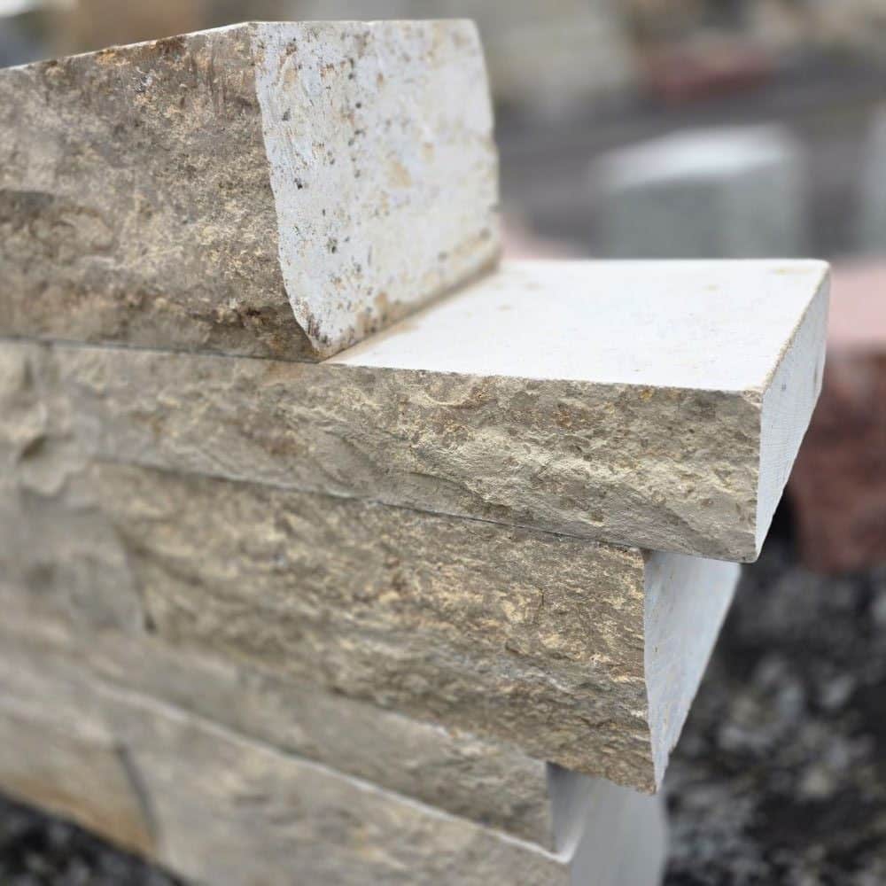 Um keine gesägte Stoßfläche an den Ecken zu haben können wir die Endsteine auch in bossierter Optik fertigen.