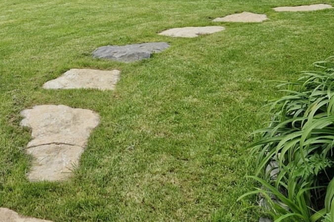 So erhalten Sie einen bequemen und sauberen Weg über Ihre Wiese aus massivem Naturstein.