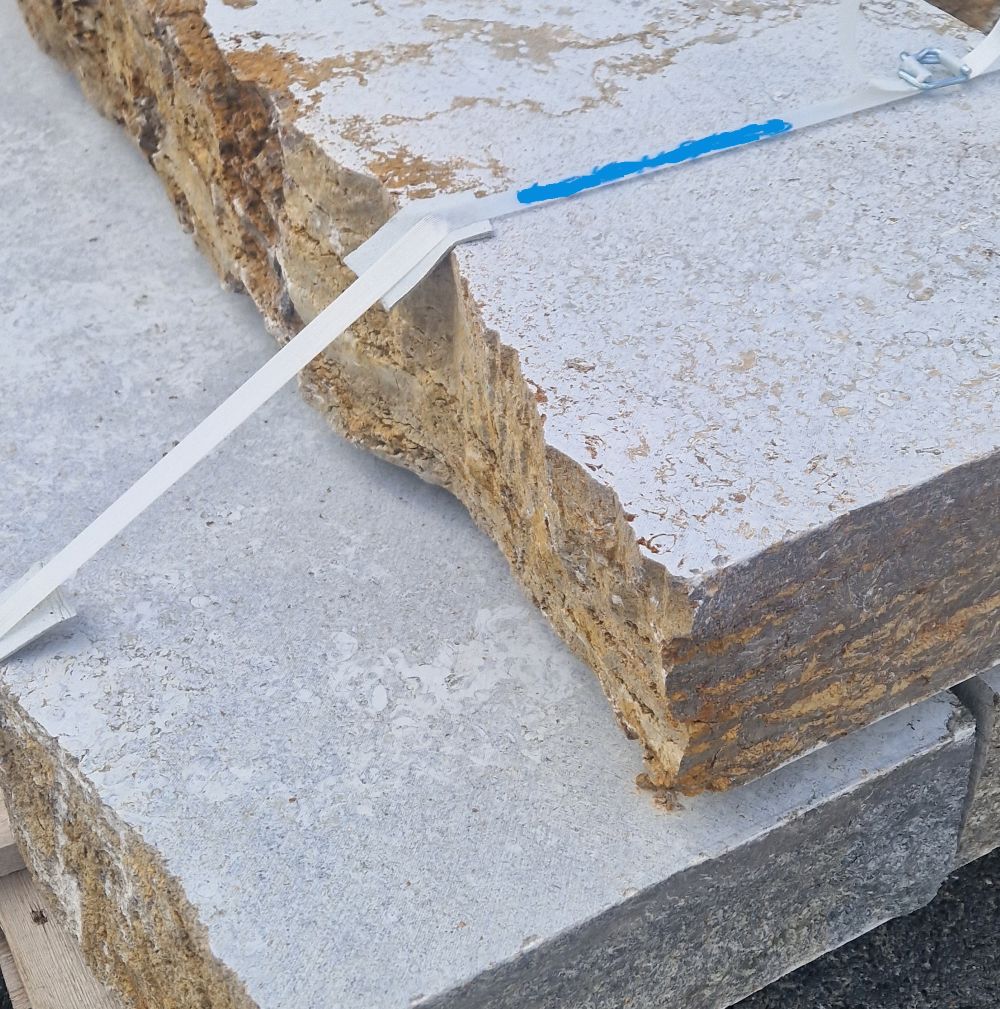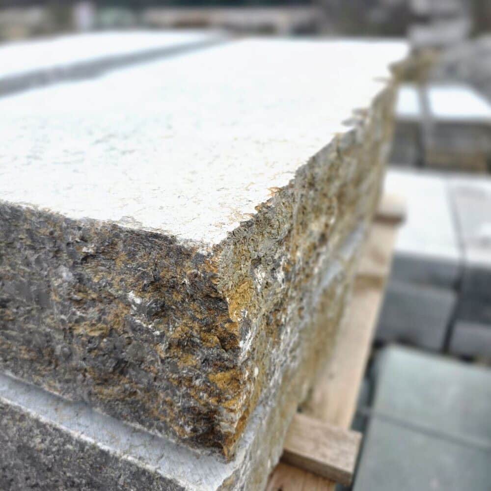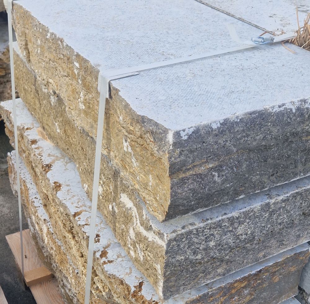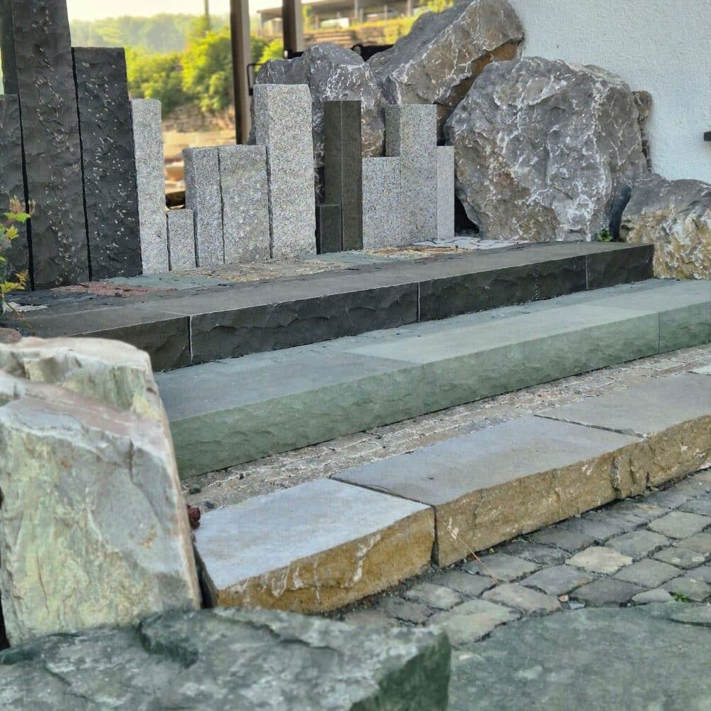 Im Muschelkalk Sortiment sind außerdem, allseits gesägte Blockstufen erhältlich.