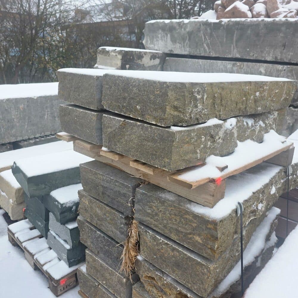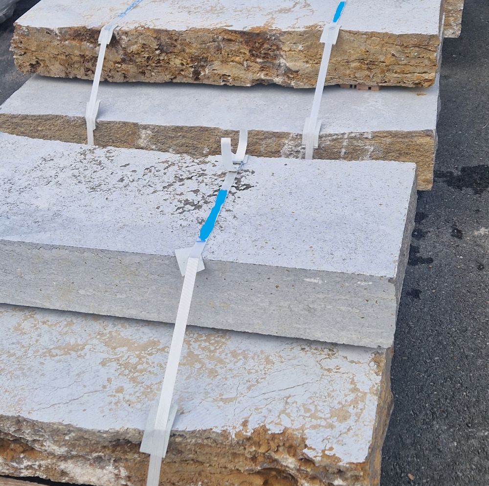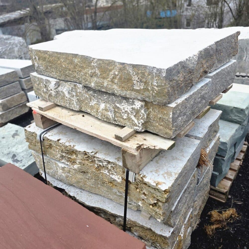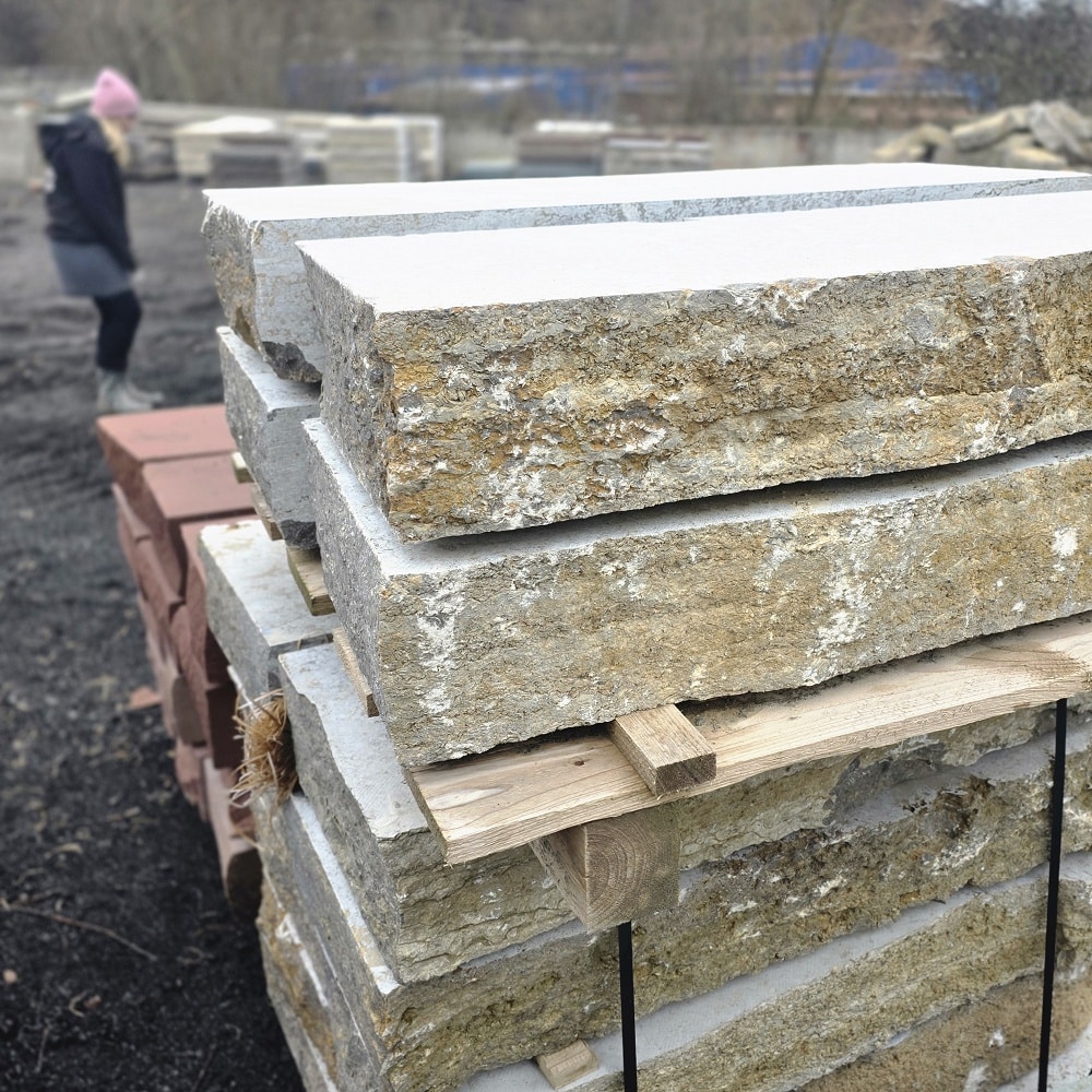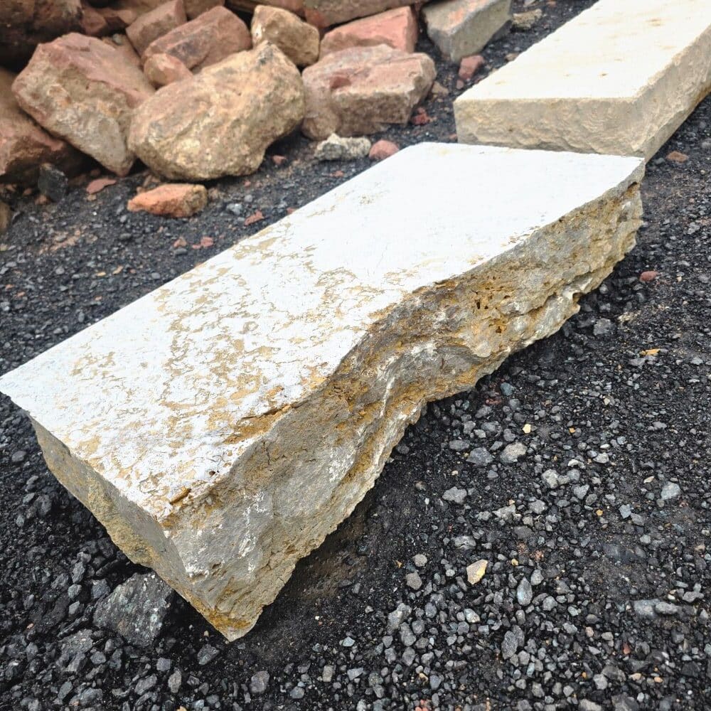Im Muschelkalk Sortiment sind außerdem, allseits gesägte Blockstufen erhältlich.