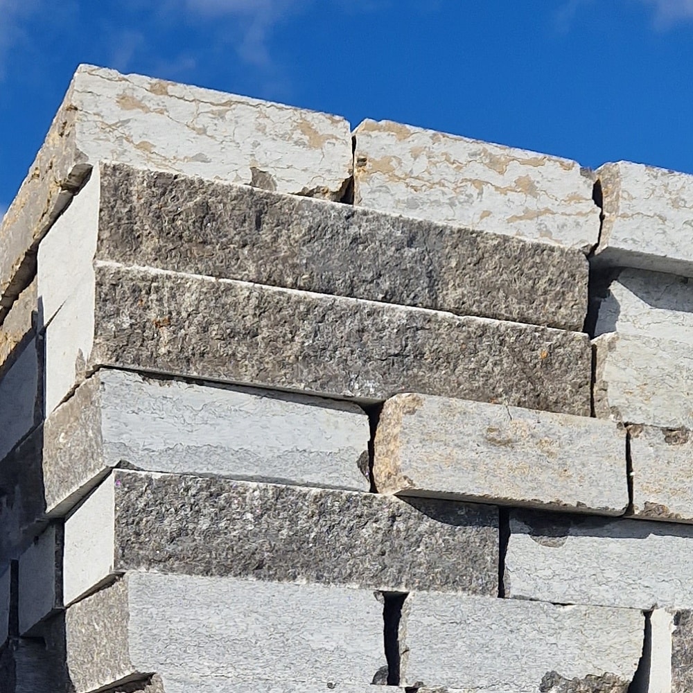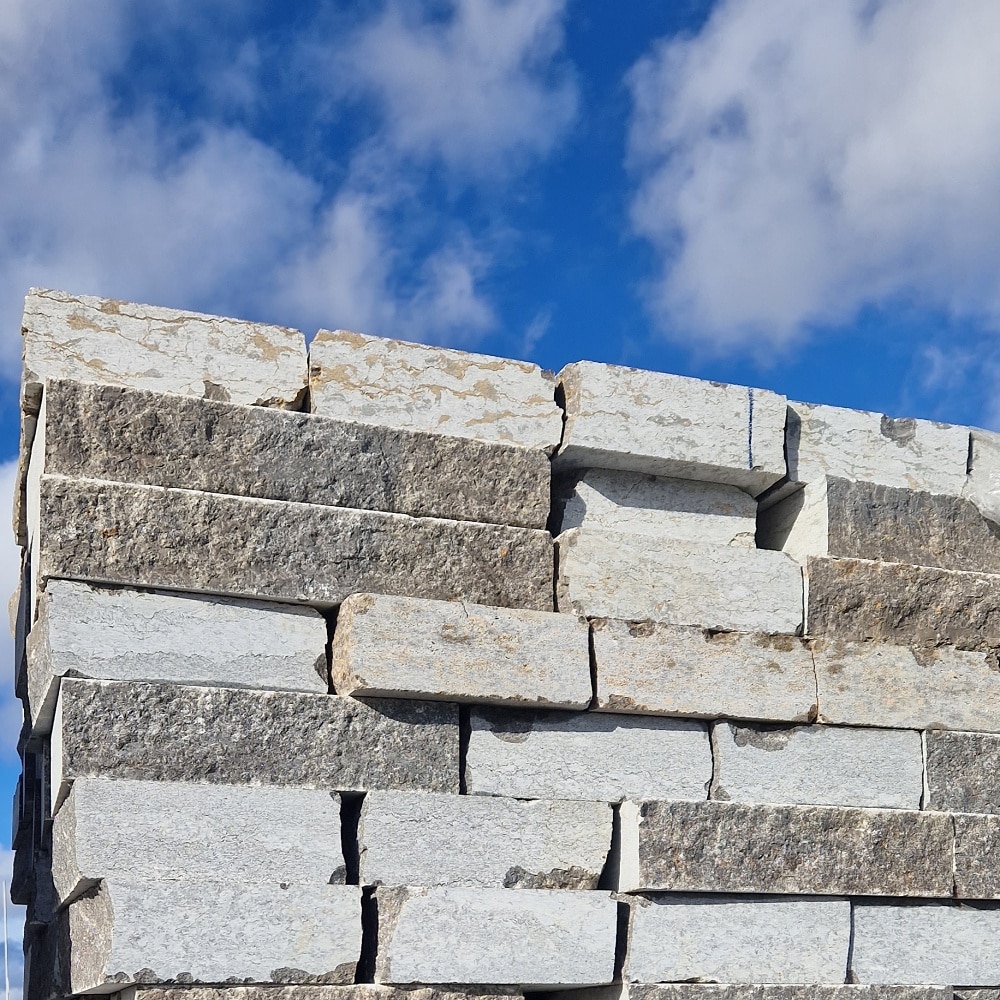 Gleichzeitig verleihen die gespaltenen Sichtflächen dem Stein eine lebendige Struktur mit natürlicher Tiefe.