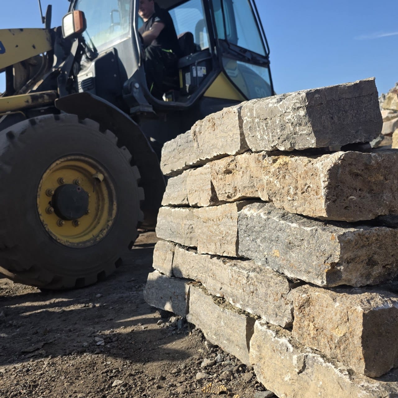 Dieser Naturstein Mauerstein wird in der Regel als Paletten-Ware geliefert und wird von uns Europaweit verschickt. In der näheren Umgebung können wir auch lose liefern.