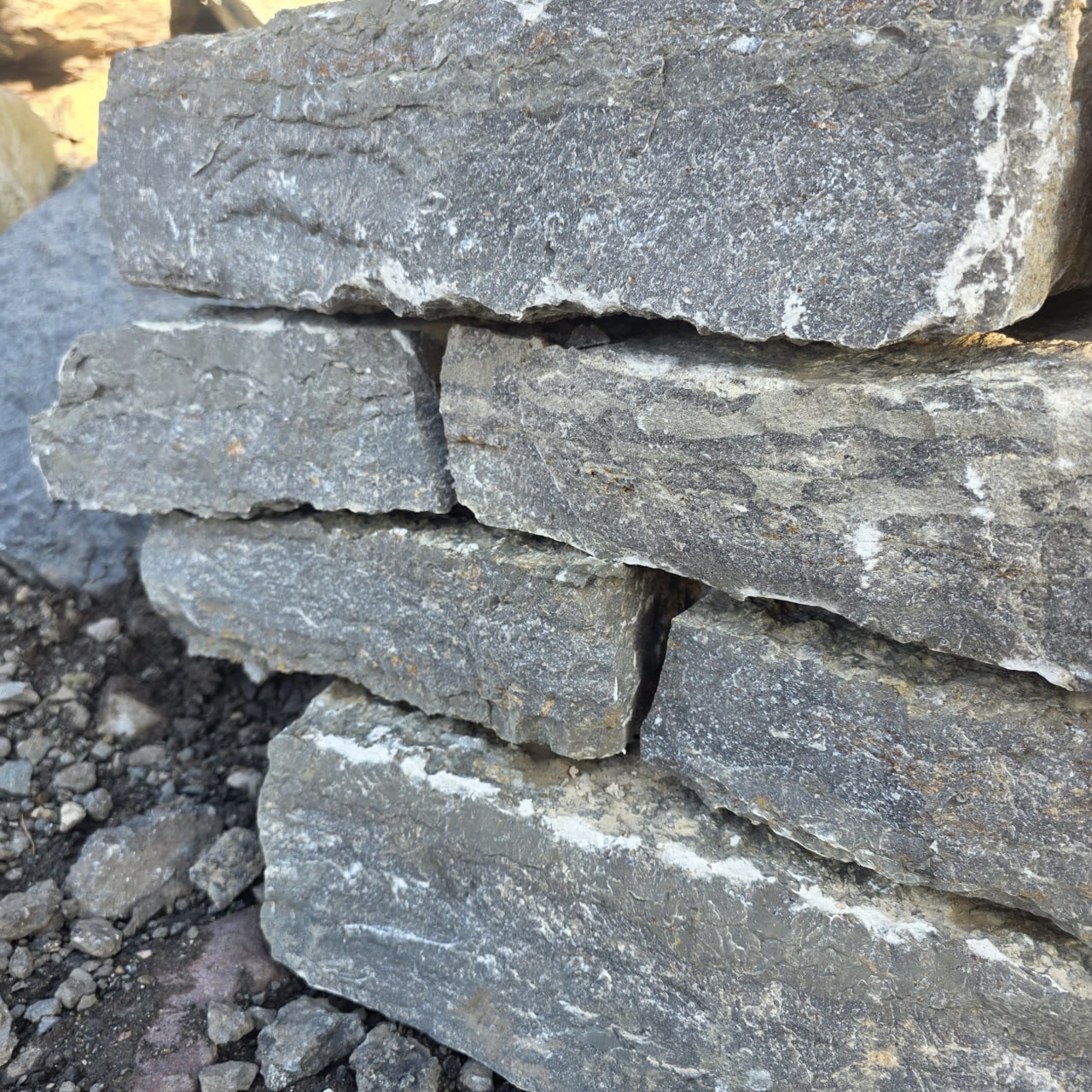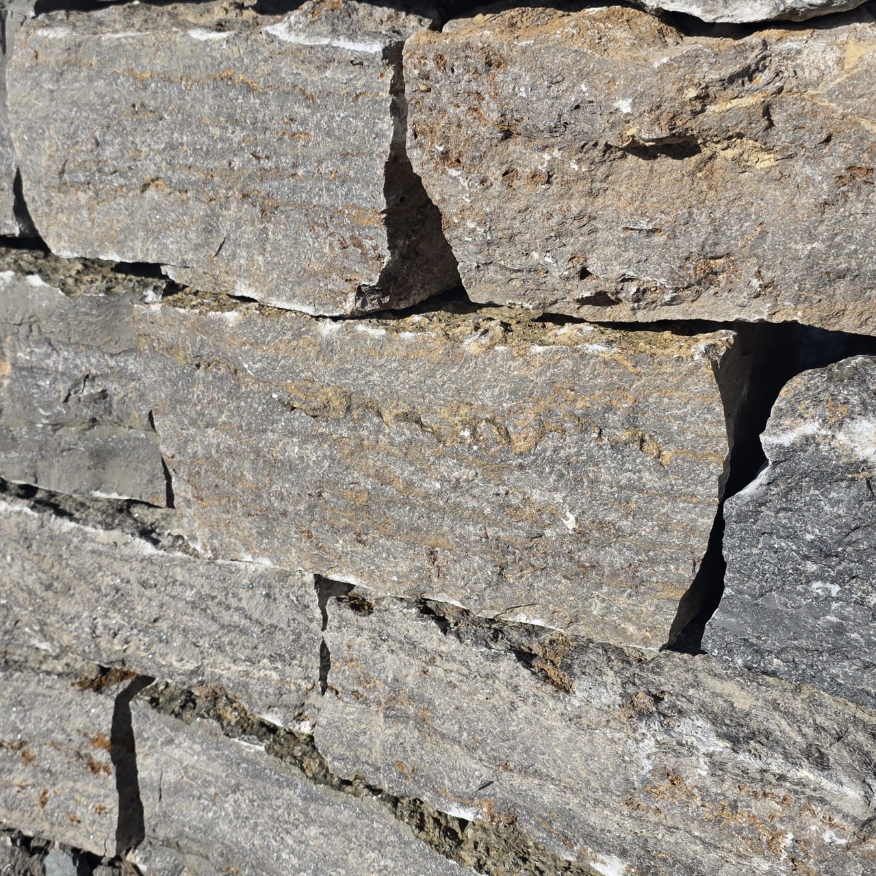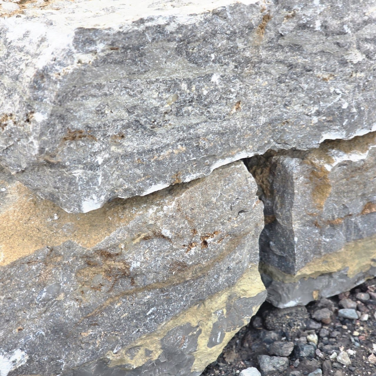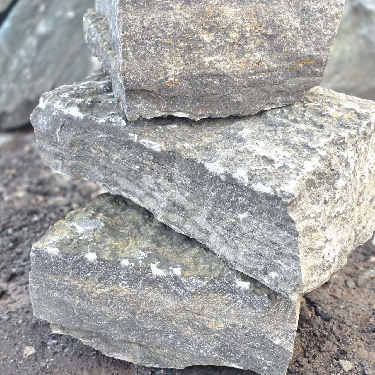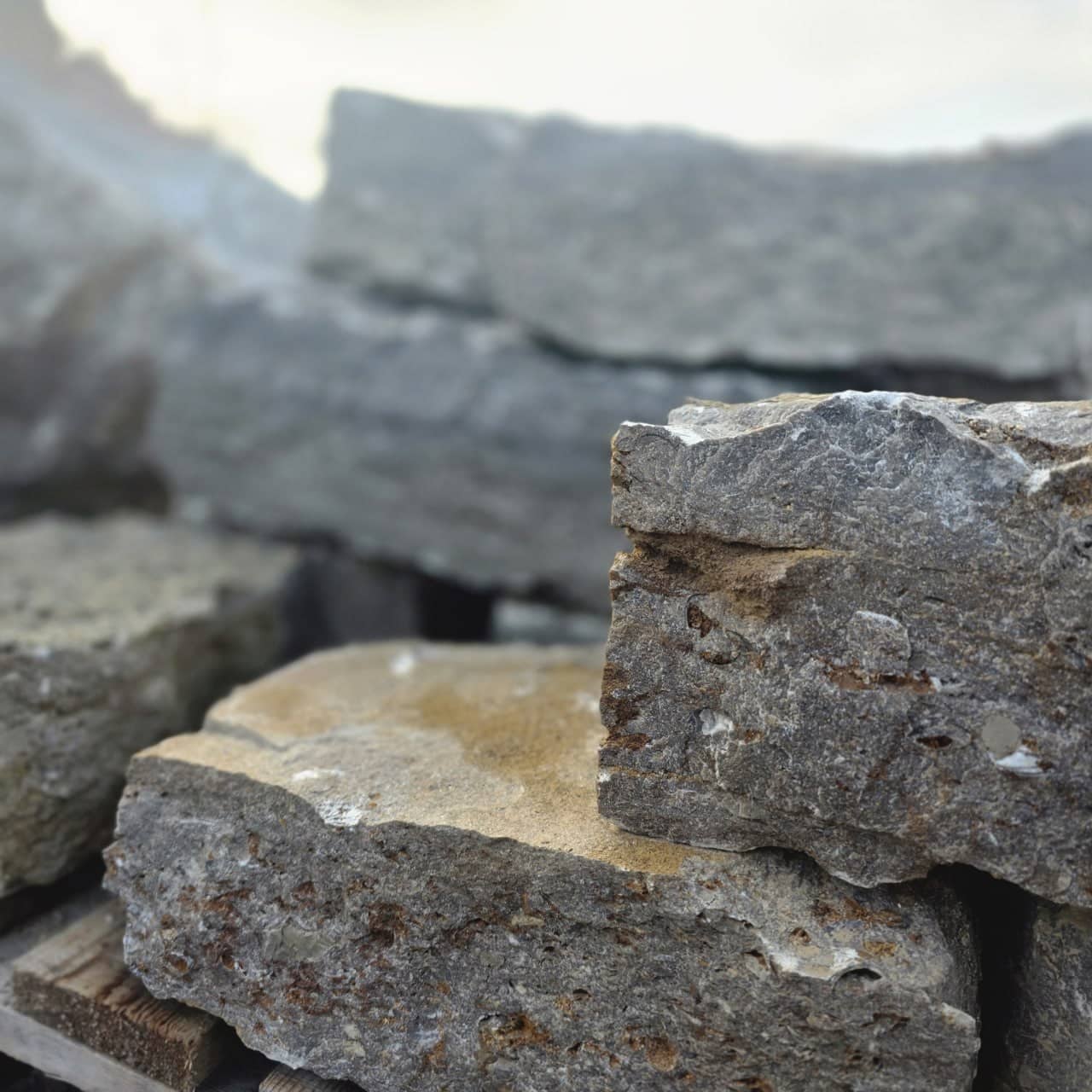 Mit diesem grauen Muschelkalk Mauerstein mit geraden Bruchkanten können Sie im Handumdrehen wunderschöne Natursteinmauern herstellen.