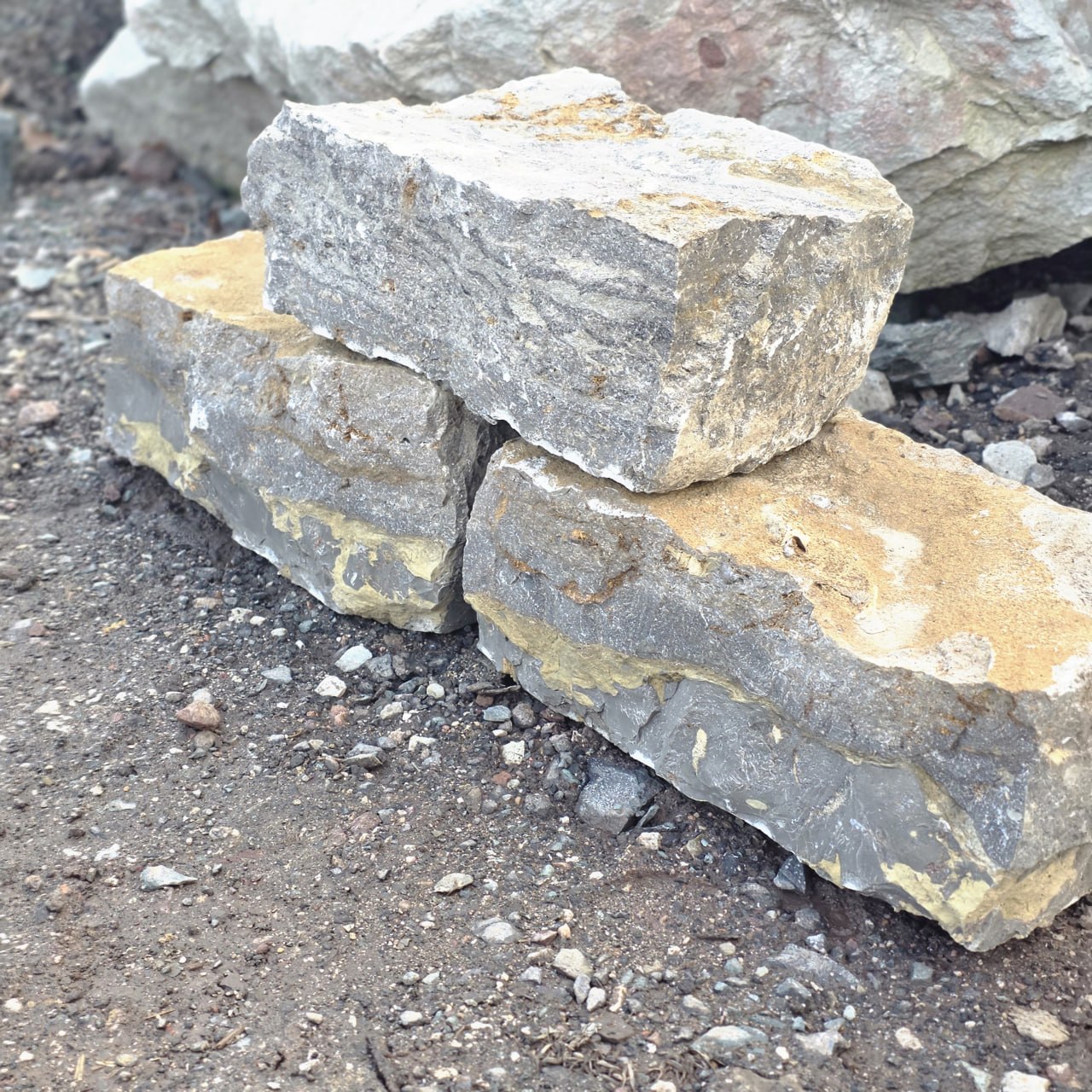 Dieser handliche Mauerstein ist nicht immer gleich. Die beige graue Farbe und Stärke des Materials können von Stein zu Stein und von Charge zu Charge unterschiedlich sein. Wir raten vor dem Kauf einen vor Ort Termin mit uns zu vereinbaren, um sich das Material anzuschauen.