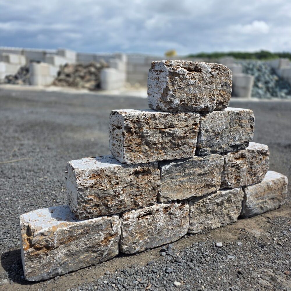 Der Mauerstein kommt am Besten zur Geltung in Kombination mit dem 7,5cm und 15cm hohen Muschelkalk Systemmauerstein, kann aber auch, wie ein kleiner Quader behandelt, eigenständig zu schicken Trockenmauern hochgezogen werden.