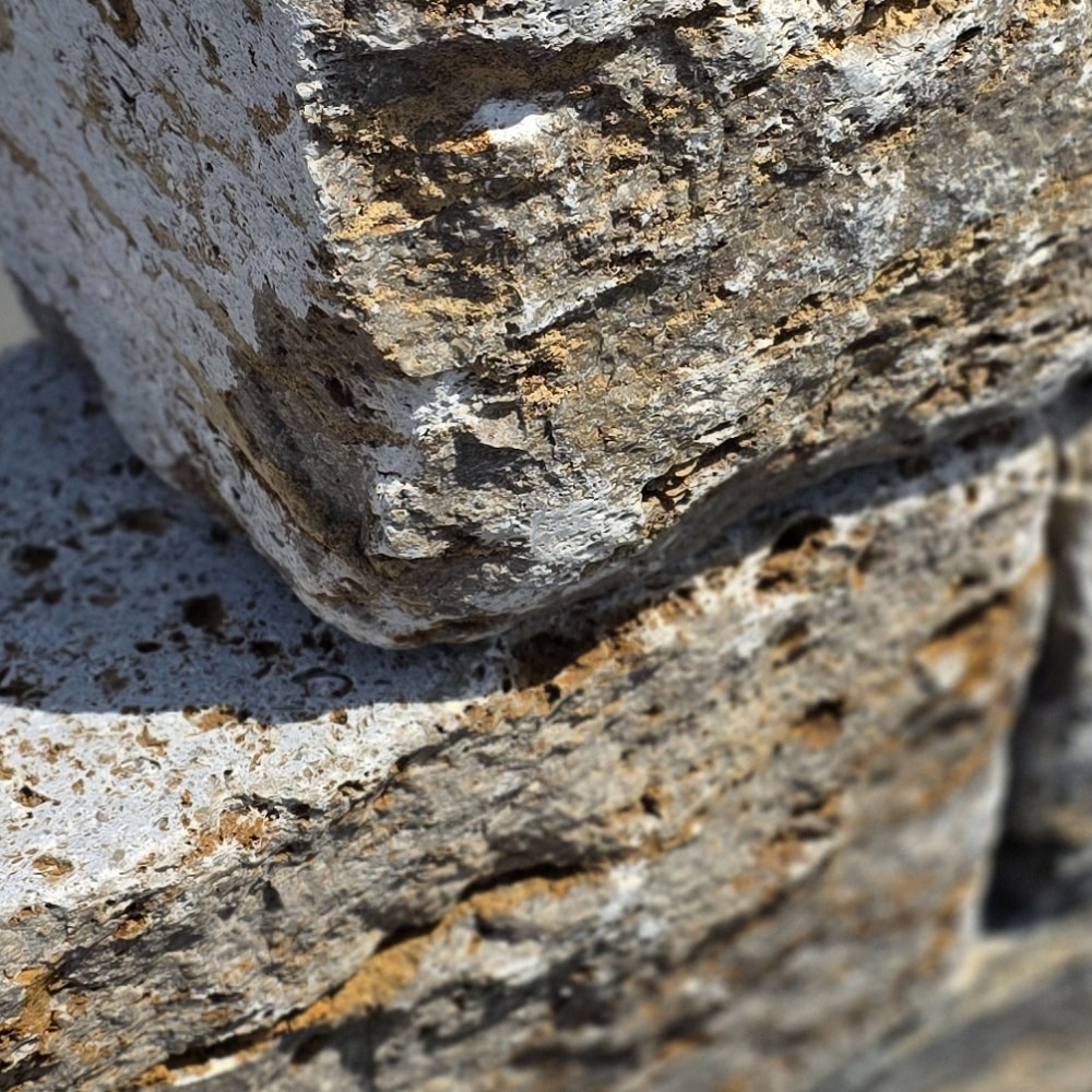 Der graue Muschelkalk mit weißen und braunen Farbnuancen passt zu nahezu allen Farben und Projekten und ist damit ein echter Allrounder.