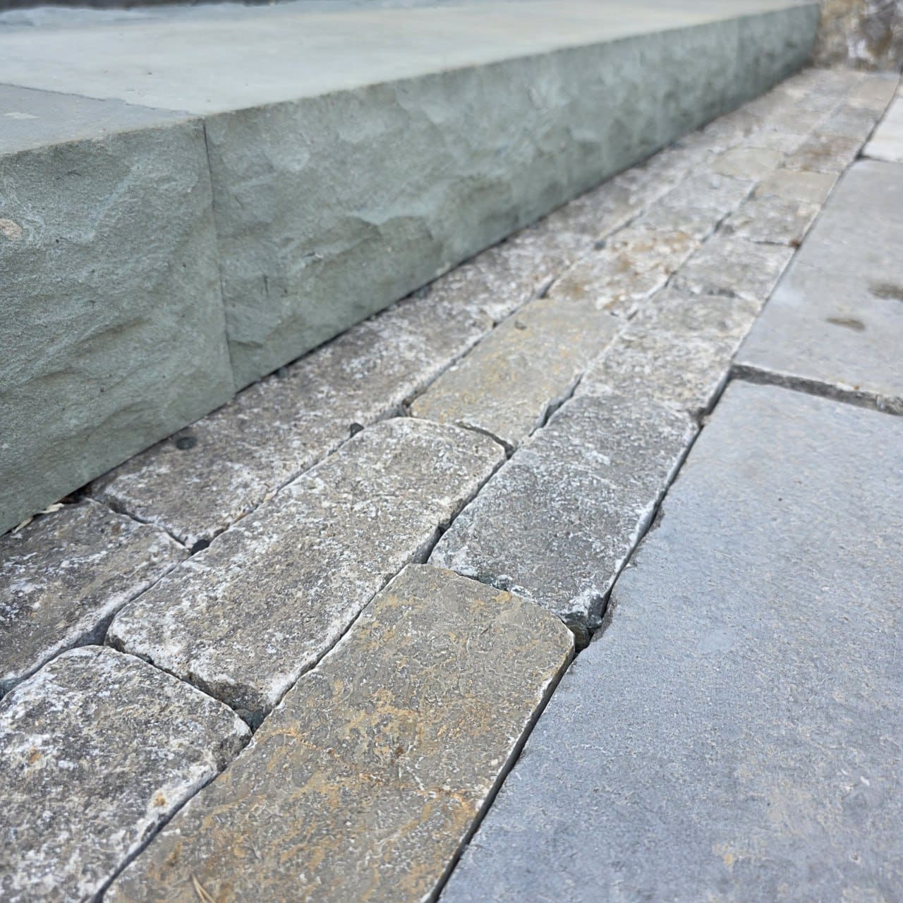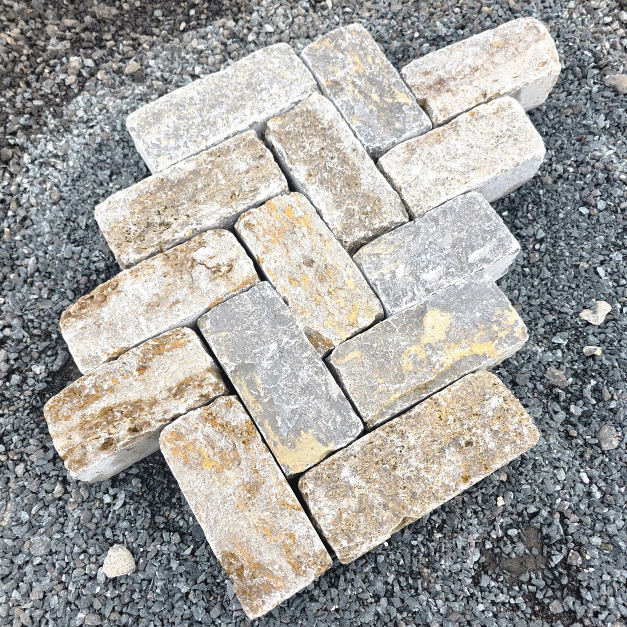 Muschelkalk Reihenpflaster antik grau 8x8x15-30
