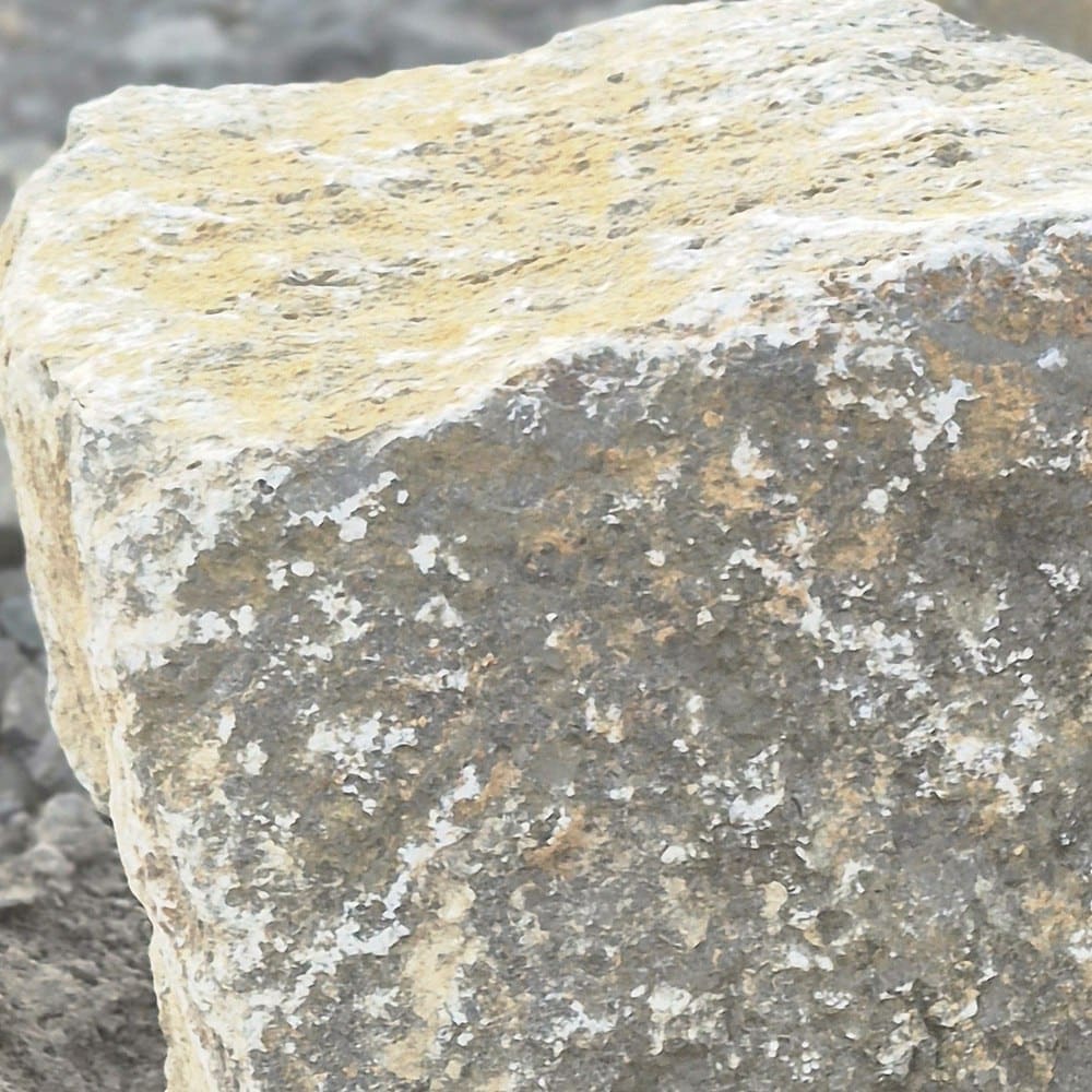 Dieser Quaderstein ist nicht immer gleich. Die gräulich-sandige Farbe und Helligkeit sowie die Stärke des Materials können von Stein zu Stein und von Charge zu Charge unterschiedlich sein.