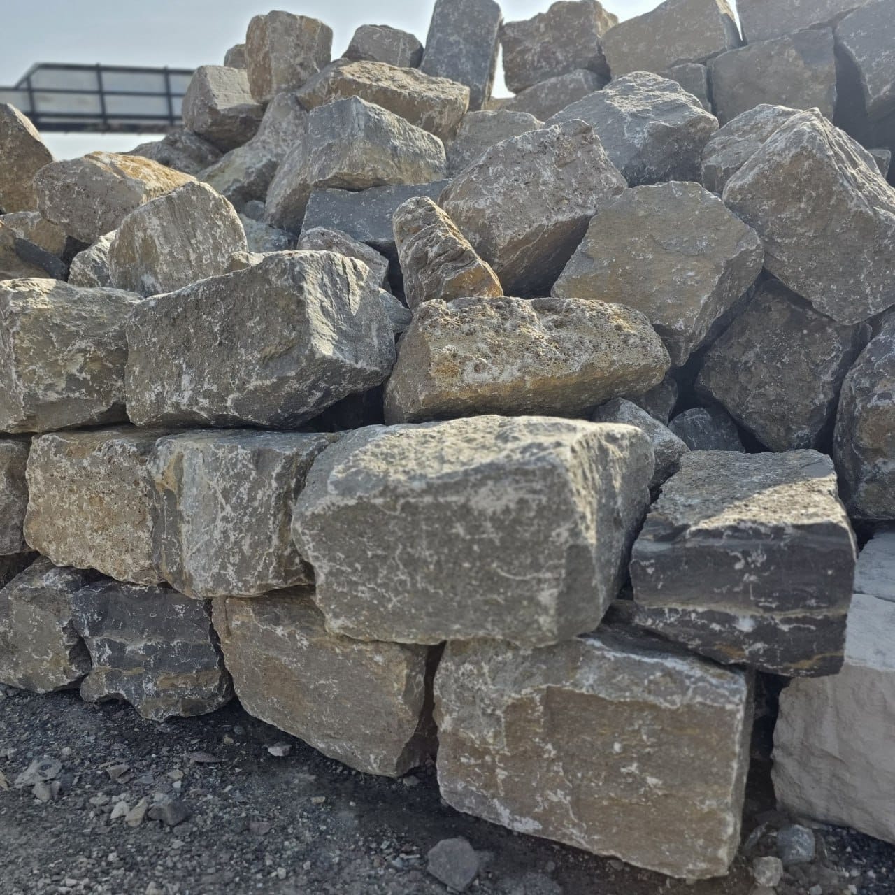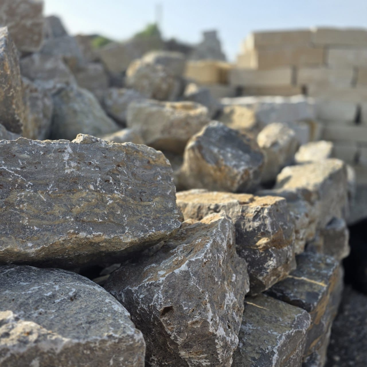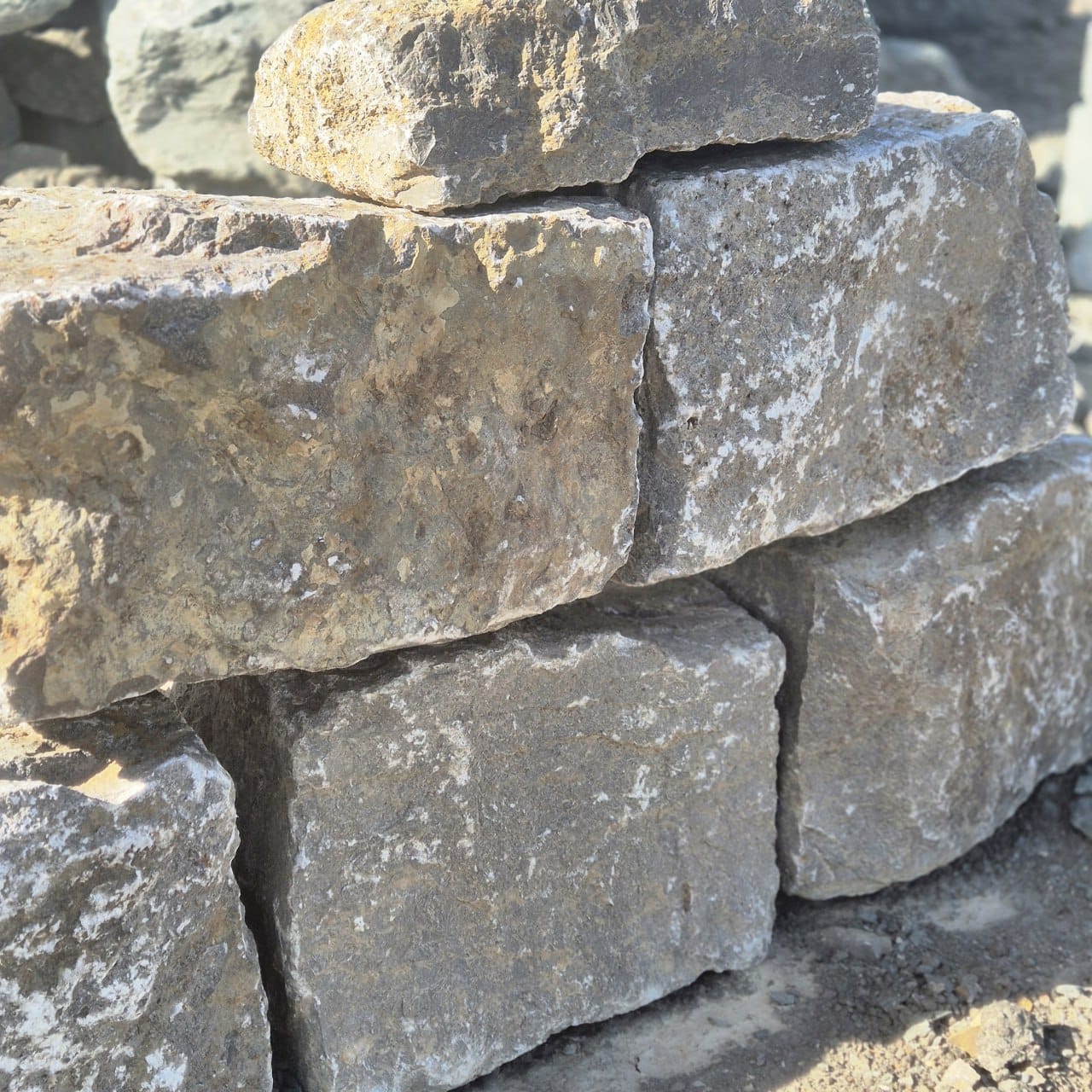 Dieser Muschelkalkstein Mauerstein gespalten wird in der Regel gekippt oder als Paletten-Ware geliefert.