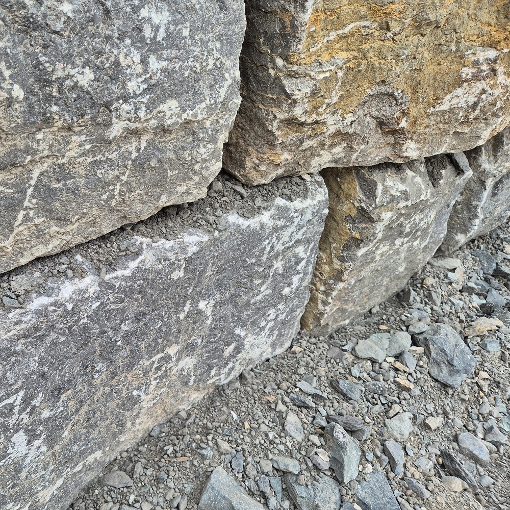 Einzelne Schnittkanten (diese sind von Vorteil im Verbau der Steine)