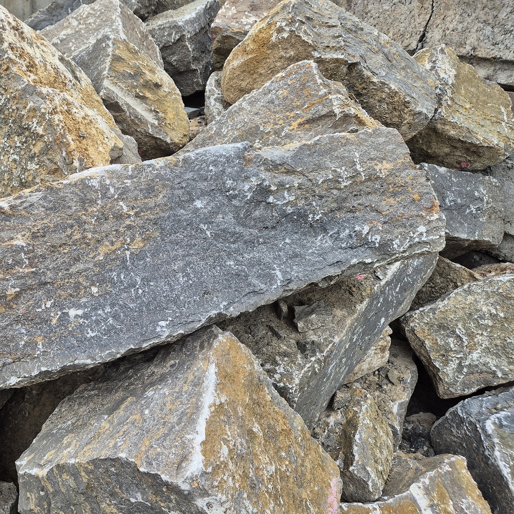 Diese grauen Steinquader werden in der Regel lose gekippt. Je nach benötigtem Gewicht und Abladestelle, bieten wir Ihnen das passende Fahrzeug an.