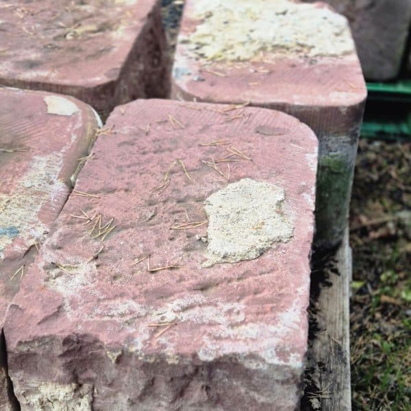 Die Quadersteine stammen ursprünglich aus einer historischen Scheune in Nordhessen, die im Jahr 1880 errichtet wurde und von uns im Jahr 2023 abgebaut wurde. Interessanterweise wurden die Steine bereits bei ihrer ursprünglichen Verwendung im Jahr 1880 aus Rückbauten gewonnen, was auf ihre außerordentliche Qualität und Langlebigkeit hinweist.