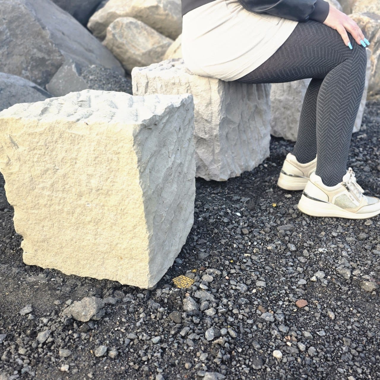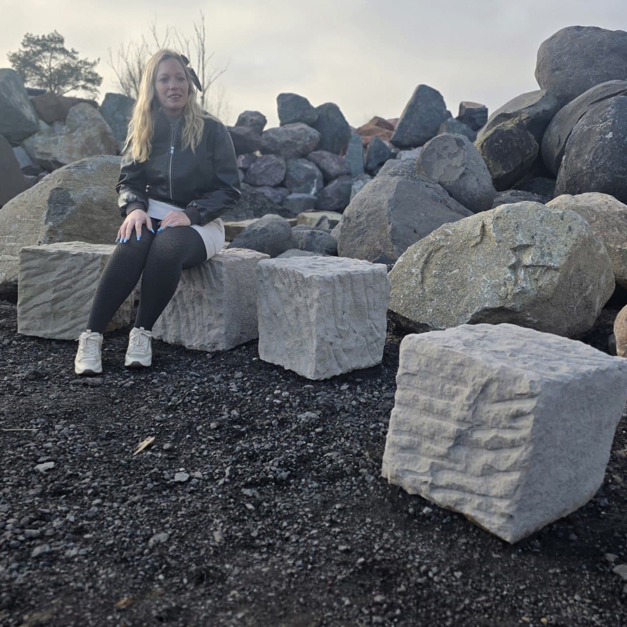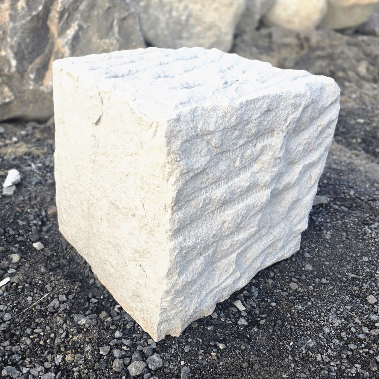 Ein massiver Natursteinwürfel mit klarer Form, natürlicher Ausstrahlung und vielseitigem Einsatzbereich.