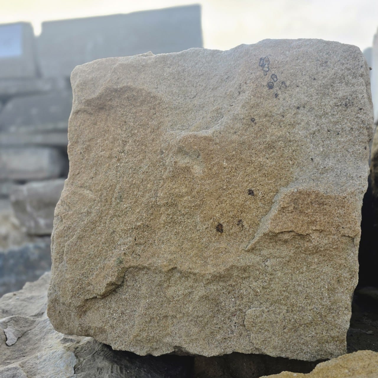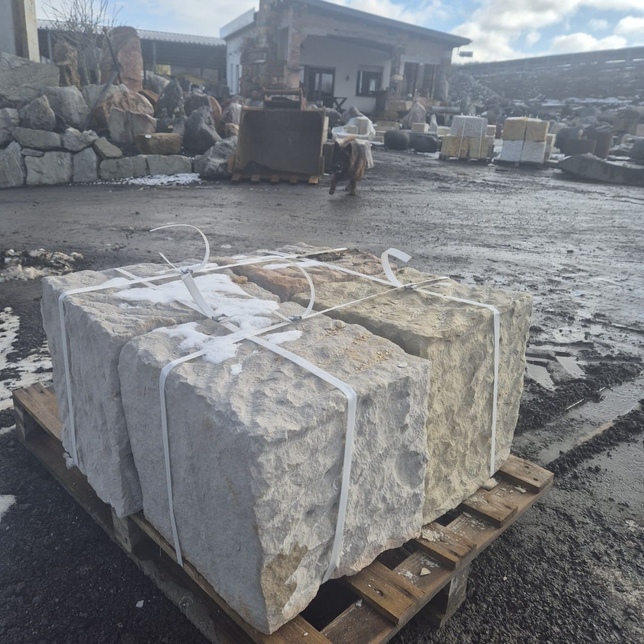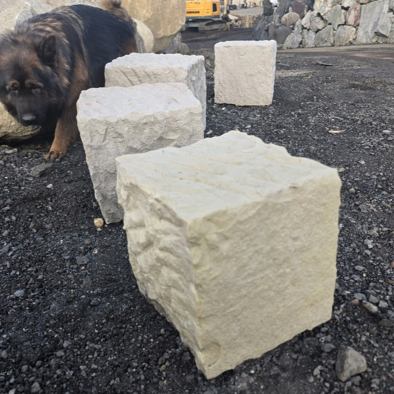 Ein massiver Natursteinwürfel mit klarer Form, natürlicher Ausstrahlung und vielseitigem Einsatzbereich.