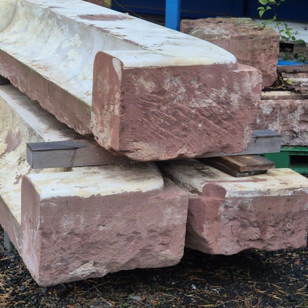 Authentische Handwerkskunst für stilvolle Sanierungen und denkmalgerechtes Bauen. Der warme, rötliche Naturstein verleiht jedem Gebäude Charakter und Beständigkeit robust, zeitlos und einzigartig in seiner Struktur.